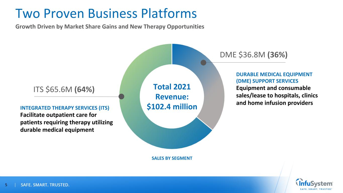 *Source: U.S. News & World Report, Best Hospitals, July 2021 Focus, Scale and Experience 4 A leading provider of equipment and services with a 100K+ device fleet in the U.S. and Canada 35-year history, perfected model in Oncology and now expanding into multiple therapies Seven major service areas in the U.S. and Canada and nearly 410 employees National scale, serving 17 out of 20 top-ranked cancer hospital systems nationwide* Participating in-network provider in over 770 health insurance networks covering over 95% of the U.S. population, with over 2,400 facility customers supporting the ITS business platform Nearly 4,900 customer sites of care supporting the DME business platform Infrastructure and services are device agnostic and scalable to support multiple therapies High ROI on capital investments; we purchase equipment only when new business is being onboarded, our sales force is highly scalable and we have no R&D expense