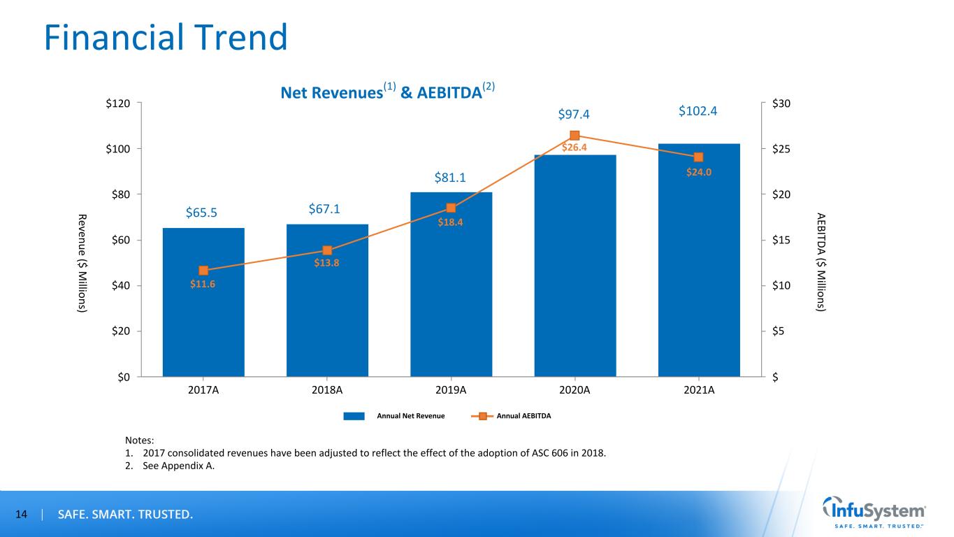 Full Year Financial Results Net Revenue Net Income AEBITDA Op Cash Flow 2021 2020 2021 2020 2021 2020 2021 2020 $102.4M $97.4M $1.4M $17.3M $24.0M $26.4M $18.3M $20.3M (1) See Appendix A. 13 (1)