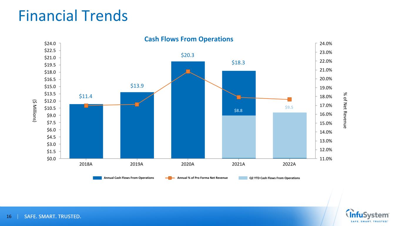 Financial Trends Annual Cash Flows From Operations Annual % of Pro Forma Net Revenue Q2 YTD Cash Flows From Operations 16 2018A 2019A 2020A 2021A 2022A $0.0 $1.5 $3.0 $4.5 $6.0 $7.5 $9.0 $10.5 $12.0 $13.5 $15.0 $16.5 $18.0 $19.5 $21.0 $22.5 $24.0 11.0% 12.0% 13.0% 14.0% 15.0% 16.0% 17.0% 18.0% 19.0% 20.0% 21.0% 22.0% 23.0% 24.0% ($ M illions) % of N et Revenue Cash Flows From Operations $8.8 $9.5 $13.9 $11.4 $20.3 $18.3